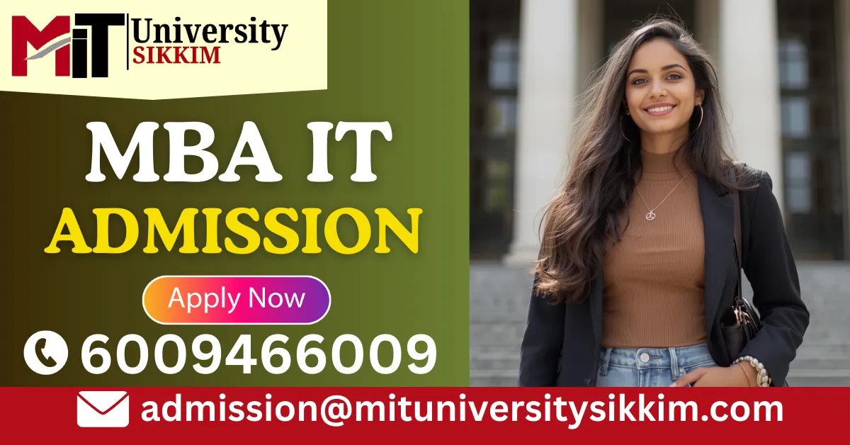 MBA IT Admission 2026 at Management and Information Technology University Sikkim is now open for graduates seeking advanced careers in technology management and business analytics. Students can apply through online and offline modes without entrance examination requirements. Eligibility includes a bachelor’s degree with 40% marks (general category) and 35% marks (SC/ST/PWD category) from any recognized university. The application fee is INR 800 (non-refundable), and the final submission deadline is 15 February 2026. MIT Sikkim provides merit-based direct admission, ensuring a transparent and accessible process for both fresh graduates and working professionals across India.